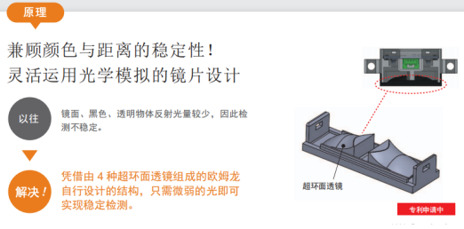 采用4種超環(huán)面透鏡,實現(xiàn)寬廣的檢測范圍,即使物體位置偏移也能檢測。