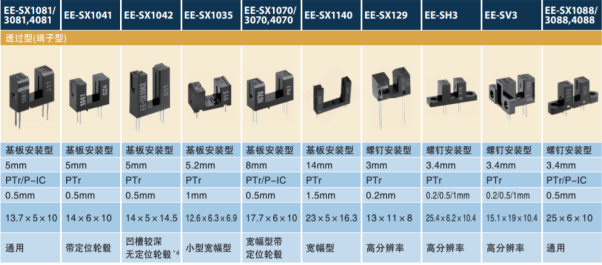 歐姆龍型號(hào)EE-SX1088,3088對(duì)射式光電開關(guān)可應(yīng)用于:復(fù)印機(jī)、傳真機(jī)、開關(guān)掃描儀、打印機(jī)、門禁機(jī)、出卡機(jī)、車輛檢測(cè)器、跑步機(jī)、機(jī)器控制開關(guān)、投幣機(jī)、自動(dòng)感應(yīng)器等上面。