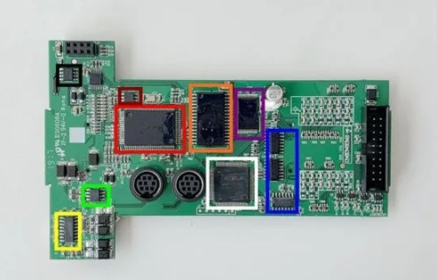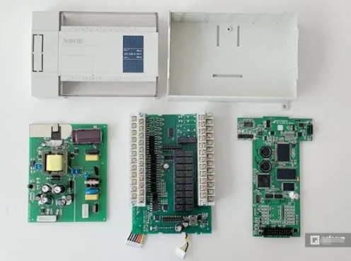 PLC 在 PCB 設(shè)計上分為了 3 個板子,從左至右分別為電源板、IO 口板以及主控板。