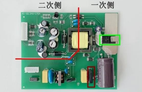 先從電源板這邊說起,首先這個產(chǎn)品是 220V 交流供電,而后需要輸出一個 24V 的直流電壓,所以整個電源板就是去做這部分工作。