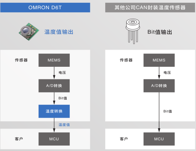 相同點:焦電傳感器和MEMS非接觸溫度傳感器都是接收紅外線微弱的熱能并輸出信號的傳感器