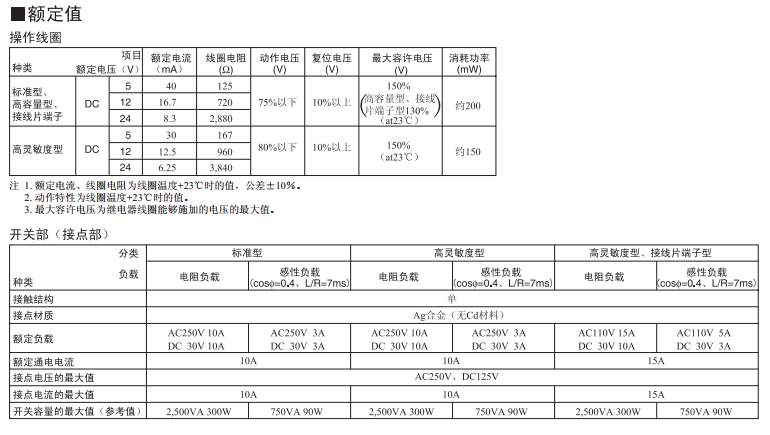 10A·15A負載開閉的扁平型功率繼電器 適用于家電設備的加熱器開閉、工業(yè)設備的輸出 實現(xiàn)高11mm、寬22mm、長16mm的小型化 備有消耗電力150mW的高靈敏度系列 取得UL、CSA規(guī)格 備有塑料密封型 備有Tab端子型(負載連接端子#187)