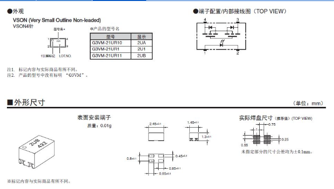 G3VM-21UR11/21UR10 光耦繼電器