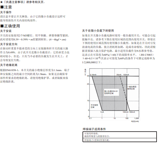 | 注:1.次數值為標準規格的節點間隔1mm(F ?Gap)的電流常熟,節點間隔為0.5mm(G Gap)的場合,定格多少有所不同,請充分注意。 |