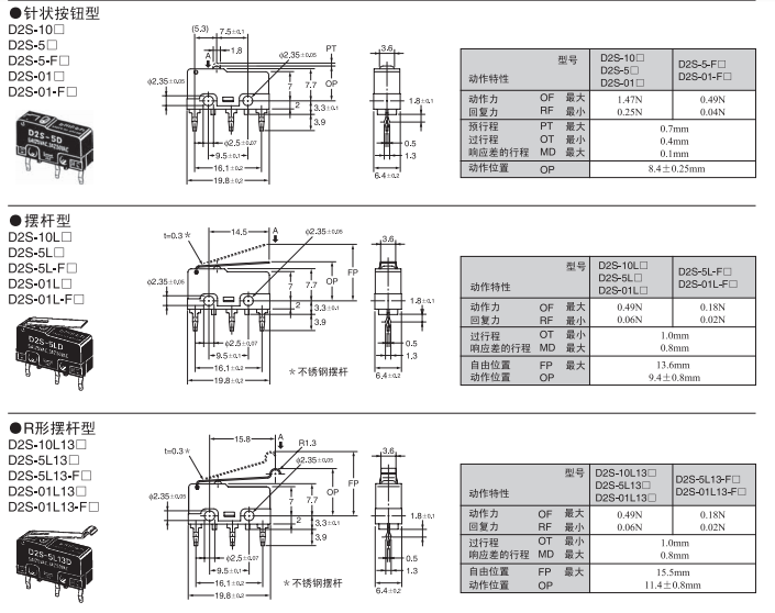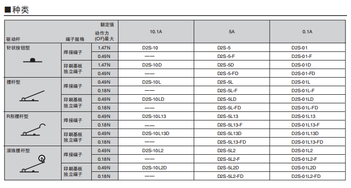 具有較好的耐焊劑性的超小型系列 焊劑無法進入的一體成型端子結(jié)構(gòu)。 動作位置(OP)的精度高達±0.25mm,周邊設(shè)計和定位簡單。 采用了橫向操作中也能方便動作的針狀按鈕型。