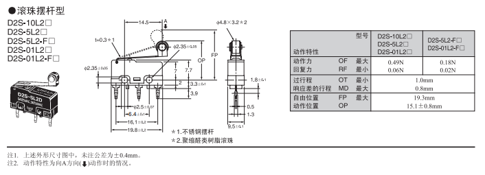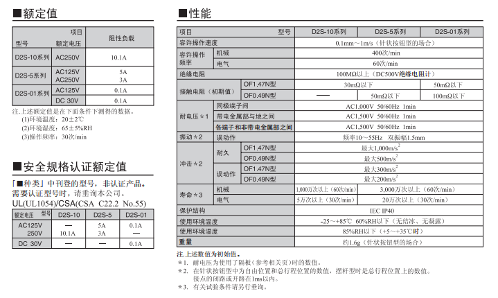 歐姆龍微動開關(guān)D2S-10