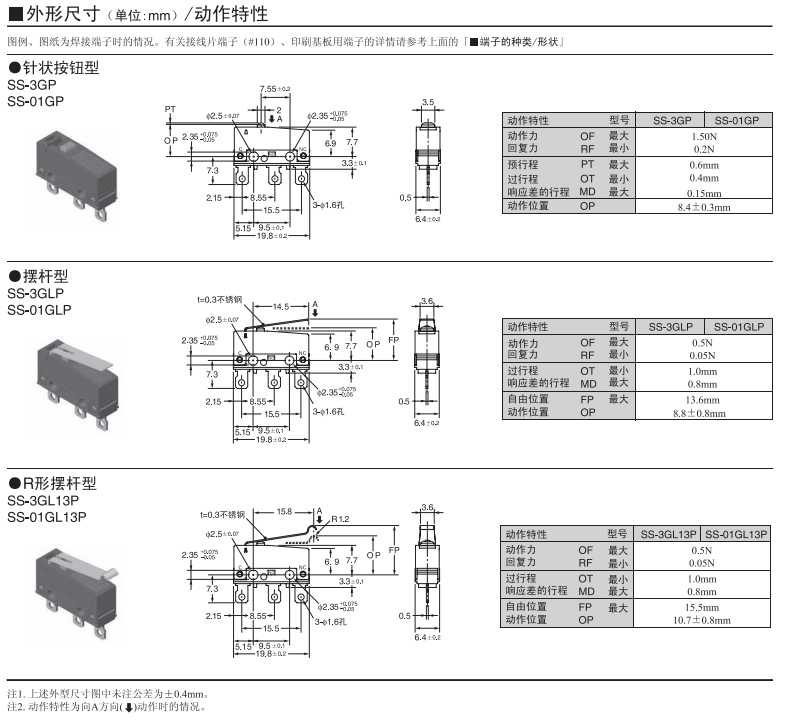 SS-P小型微動歐姆龍開關
