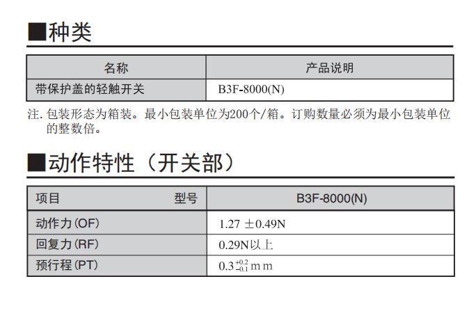 B3F-8000(N) 輕觸式開關(guān)(帶保護蓋)